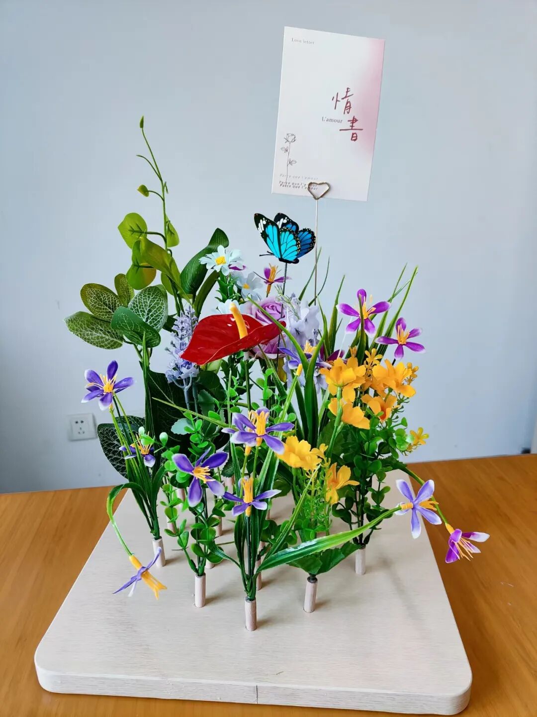 1.内容物:插花盘1个、花材1组、名牌夹1个。